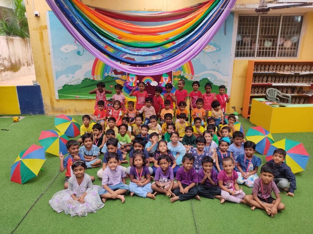 Songs, stories and fun filled activities lure children to happily get acquainted to the pre-school setting to further their developmental journey simultaneously involving parents who support us in their little ones developmental progression.